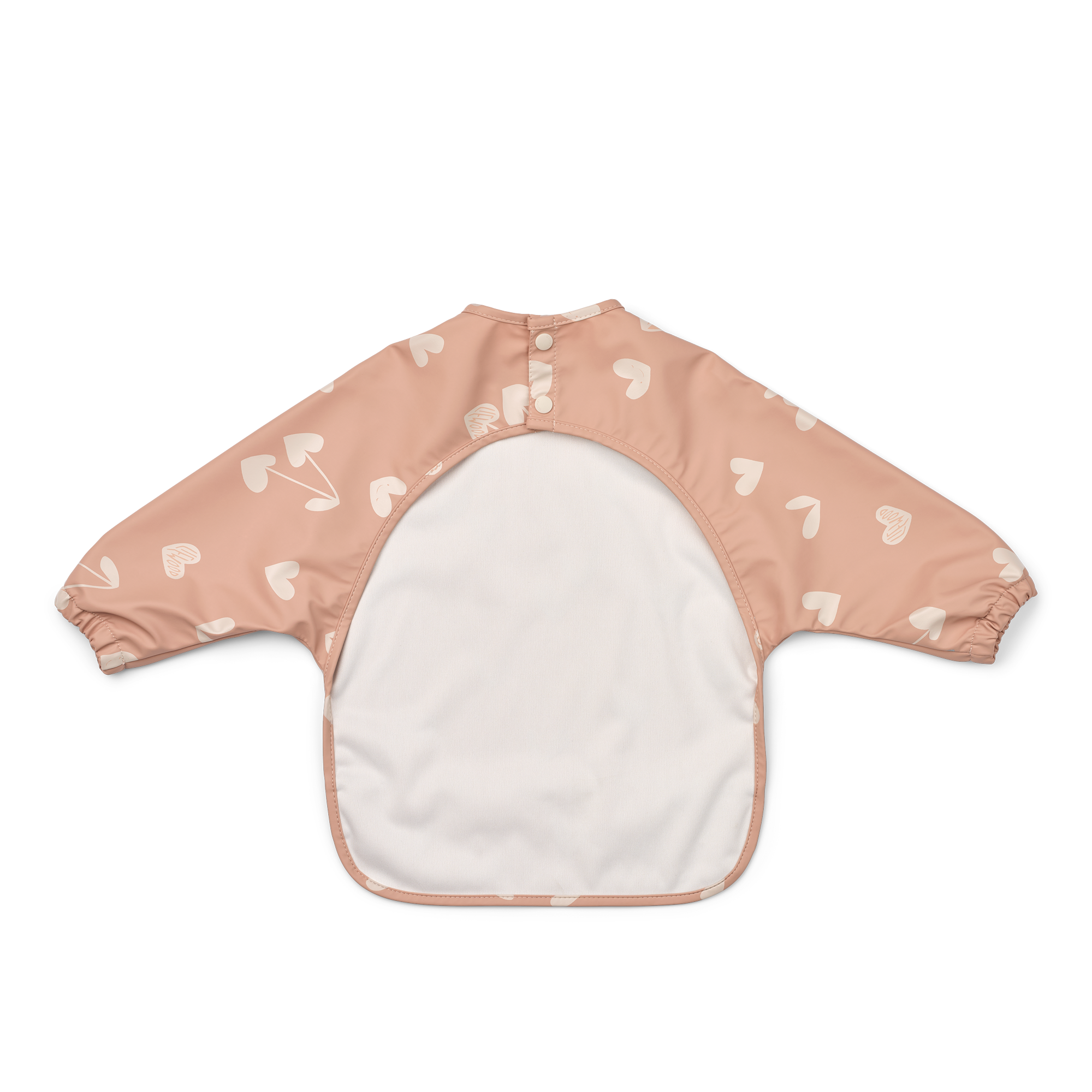 Hergestellt aus 100 % GRS-zertifiziertem, recyceltem Polyester mit wasserabweisender PU-Beschichtung fühlt sich das Lätzchen angenehm leicht und weich an. Elastische Ärmelbündchen sorgen für eine bequeme Passform, und die praktische Fronttasche fängt alles auf, was daneben geht.